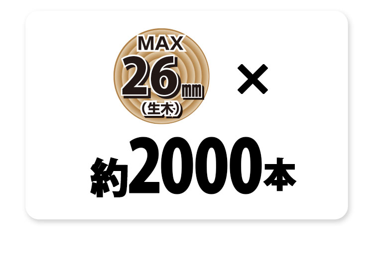 満充電時の切断本数 | 切断枝径 生木26mm・・・約2000本 ※参考数値であり、バッテリー状態や使用状況により異なります。 |