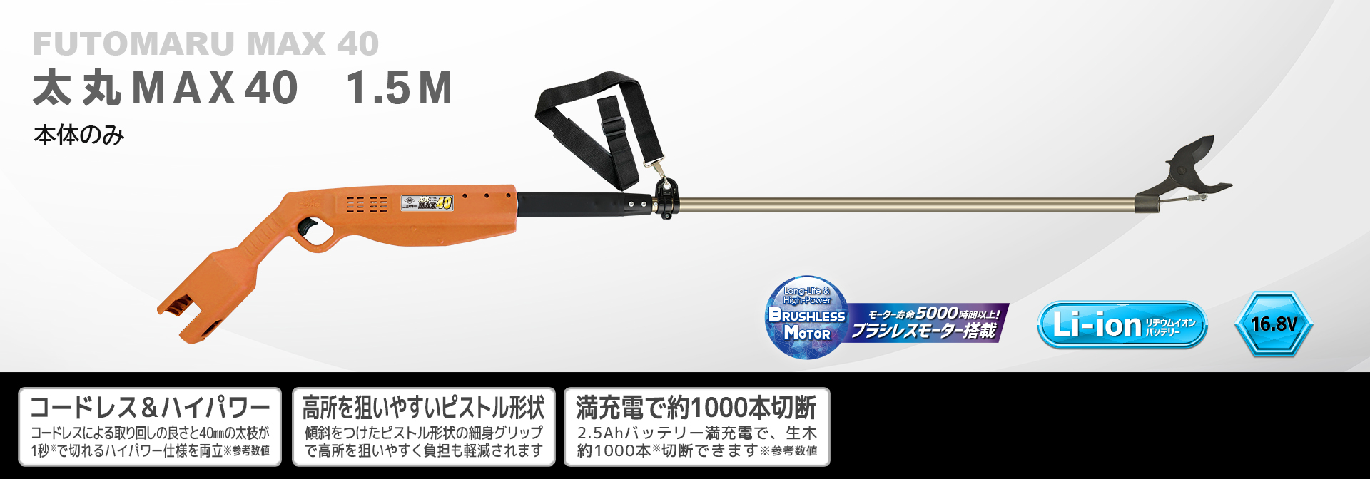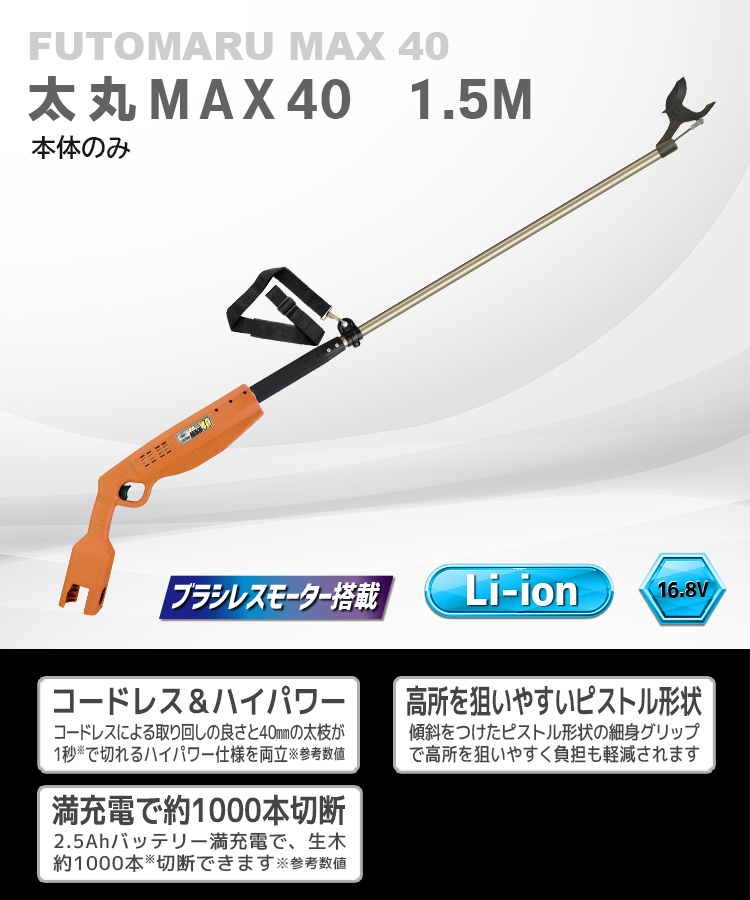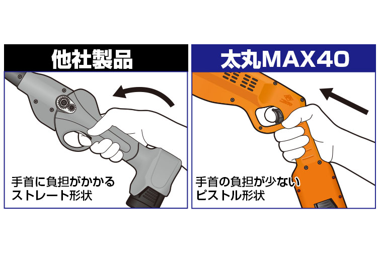 コードレスによる取り回しの良さと、40㎜までの
